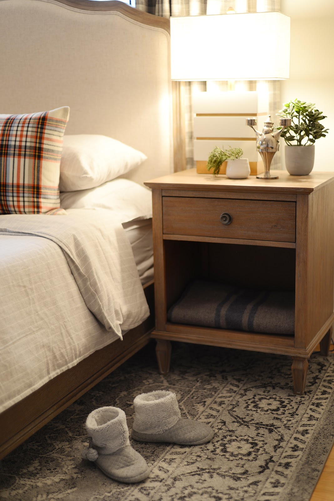 Our bed is so comfortable these days. TheLeesa mattresscontinues to be a dream and I've switched out our lighter bedding for the flannel duvet cover and shams. I recently switched to a King duvet insert inside our Queen duvet cover and it fits so much better and looks fuller. No more floppy, loose duvet edges! Plaid pillow covers and a windowpane plaid blanket add even more seasonal pattern.